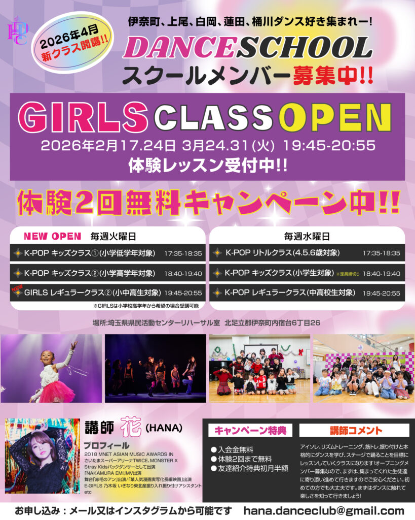 K-POPクラスに加えて、ガールズクラスも新しく開講します✨